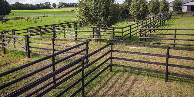 Optisch ansprechende Koppelzäune, mit widerstandsfähigen Toren, die sich perfekt in die Landschaft integrieren.